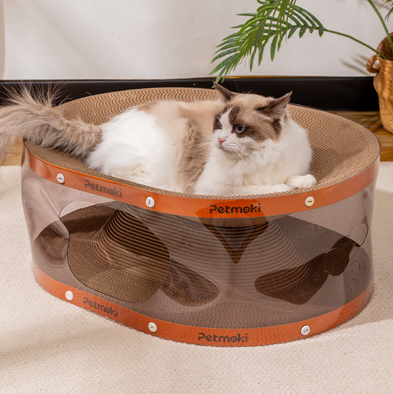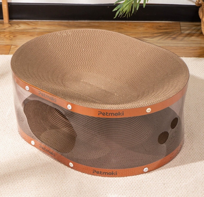 PawsCube Clear Cat Tunnel & Scratching Bed – PVC Durable Layer + Corrugated Cardboard, Anti-Furniture Scratching